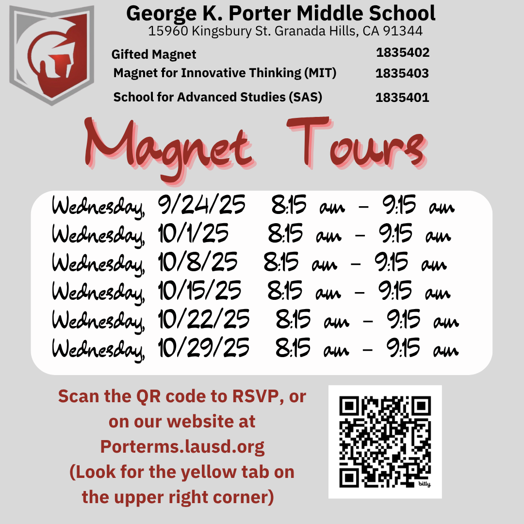 Magnet / SAS Tours Wednesdays 8:15 - 9:15 AM