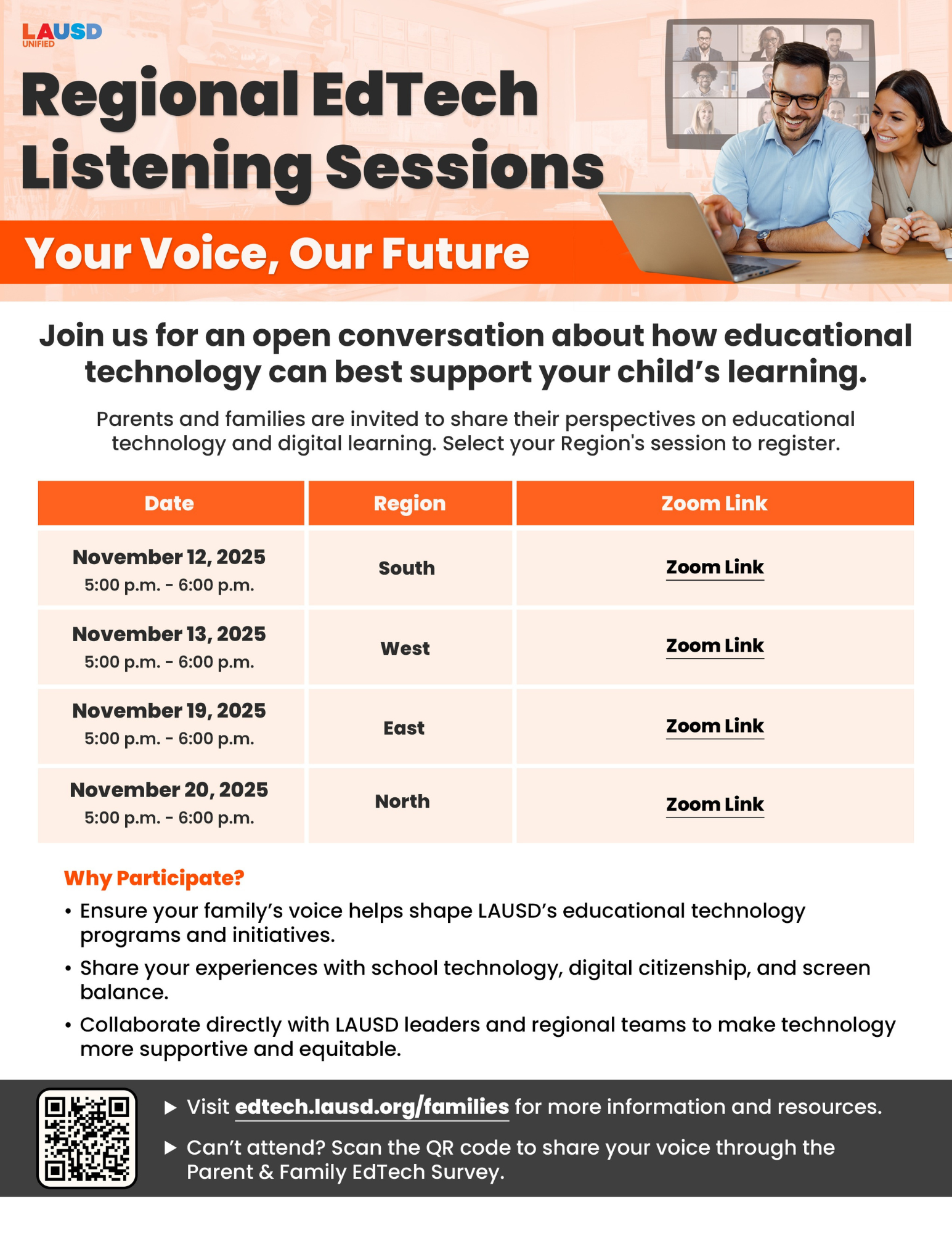 Regional EdTech Listening Sessions Thursday November 20, 5 - 6 PM on Zoom